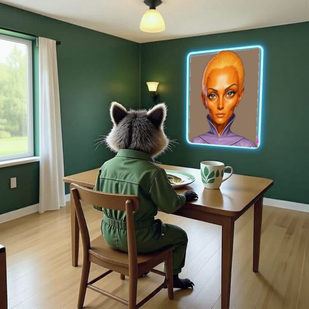 As usual, by the time he slid the shimmering flesh onto a large green crockery plate at his broad wooden kitchen table, his voice was already much more flexible. The sound of his voice was even more important than it might have been because the hooms were clearly new to dealing with “aliens.” To them, Lozlian was forced to acknowledge, it wasn’t entirely clear if he resembled a bearish raccoon, or a raccoonish bear.